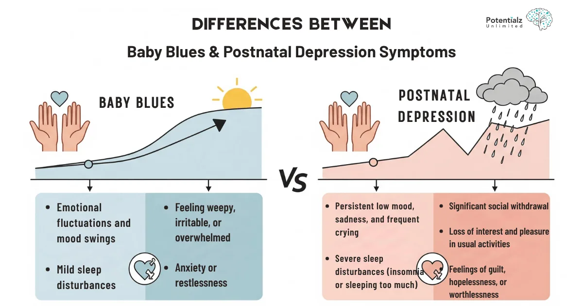 It’s crucial to distinguish between the common ‘baby blues’ and clinical postnatal depression: